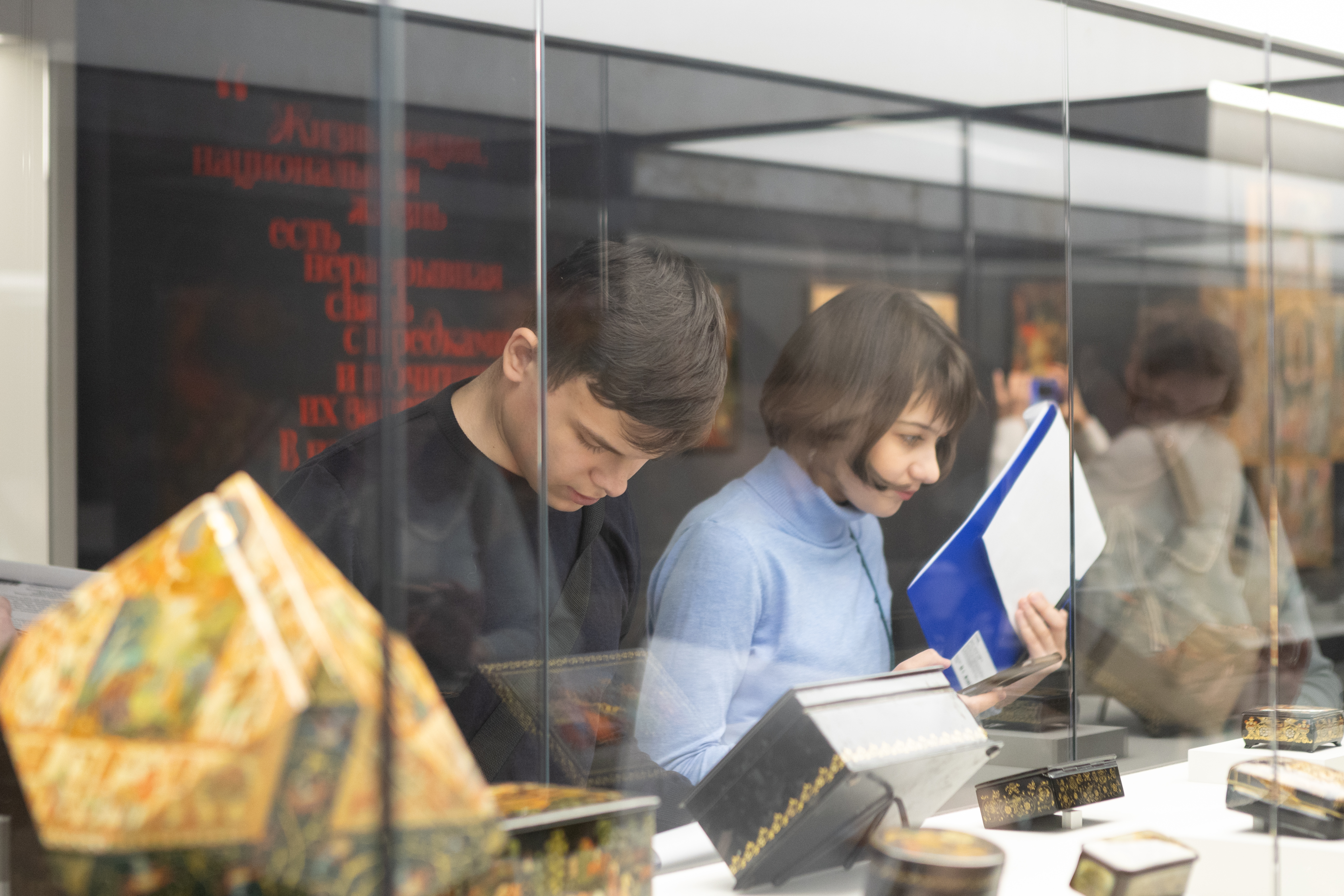 С 7 по 19 апреля 3 929 школьников участвовали в интеллектуальных соревнованиях и искали ответы на вопросы заданий в пространстве выставки и представленных там произведений мастеров традиционных центров лаковой миниатюры — Федоскино, Палеха, Мстёры и Холуя.