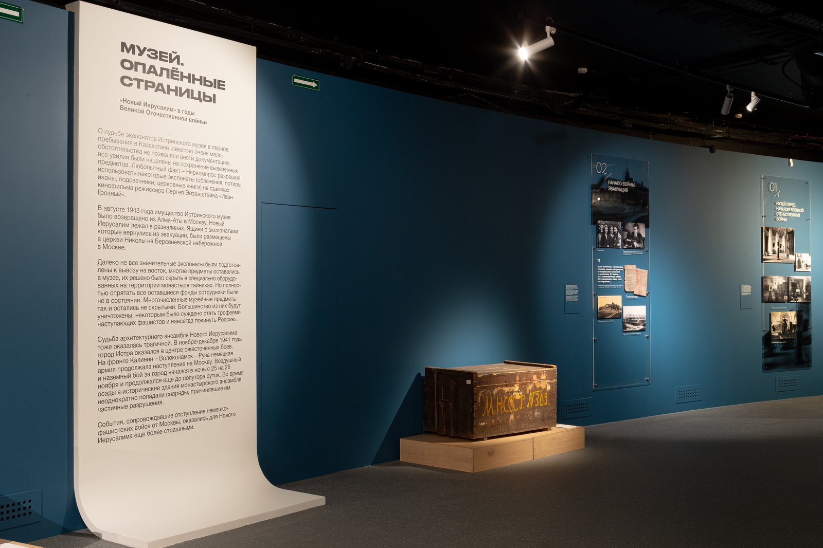 Фотодокументальный проект «МУЗЕЙ. ОПАЛЁННЫЕ СТРАНИЦЫ» рассказывает о том, как основанный в помещениях Ново-Иерусалимского монастыря в 1920 году музей «Новый Иерусалим» вместе со всей страной пережили военное лихолетье Великой Отечественной войны, фашистскую оккупацию в 1941 году. Экспонируемые фотокопии документов и фотографий, документально-изобразительных материалов из фондов музея раскрывают факты о спасённых и погибших коллекциях, о музейщиках, совершивших настоящий подвиг в деле спасения экспонатов и об Истре — городе, сожжённом фашистами дотла и восстановленном из пепла.