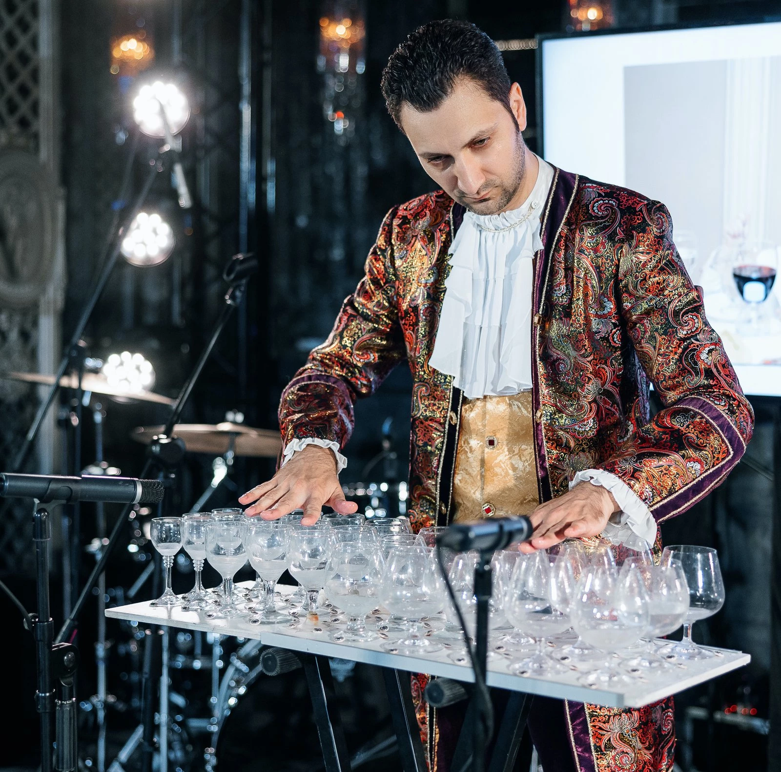 Александр Лемешев — широко известный музыкант-виртуоз с мировым именем, демонстрирующий виртуозную игру на необычном инструменте, который называется «стеклянной арфой» (игра на бокалах).