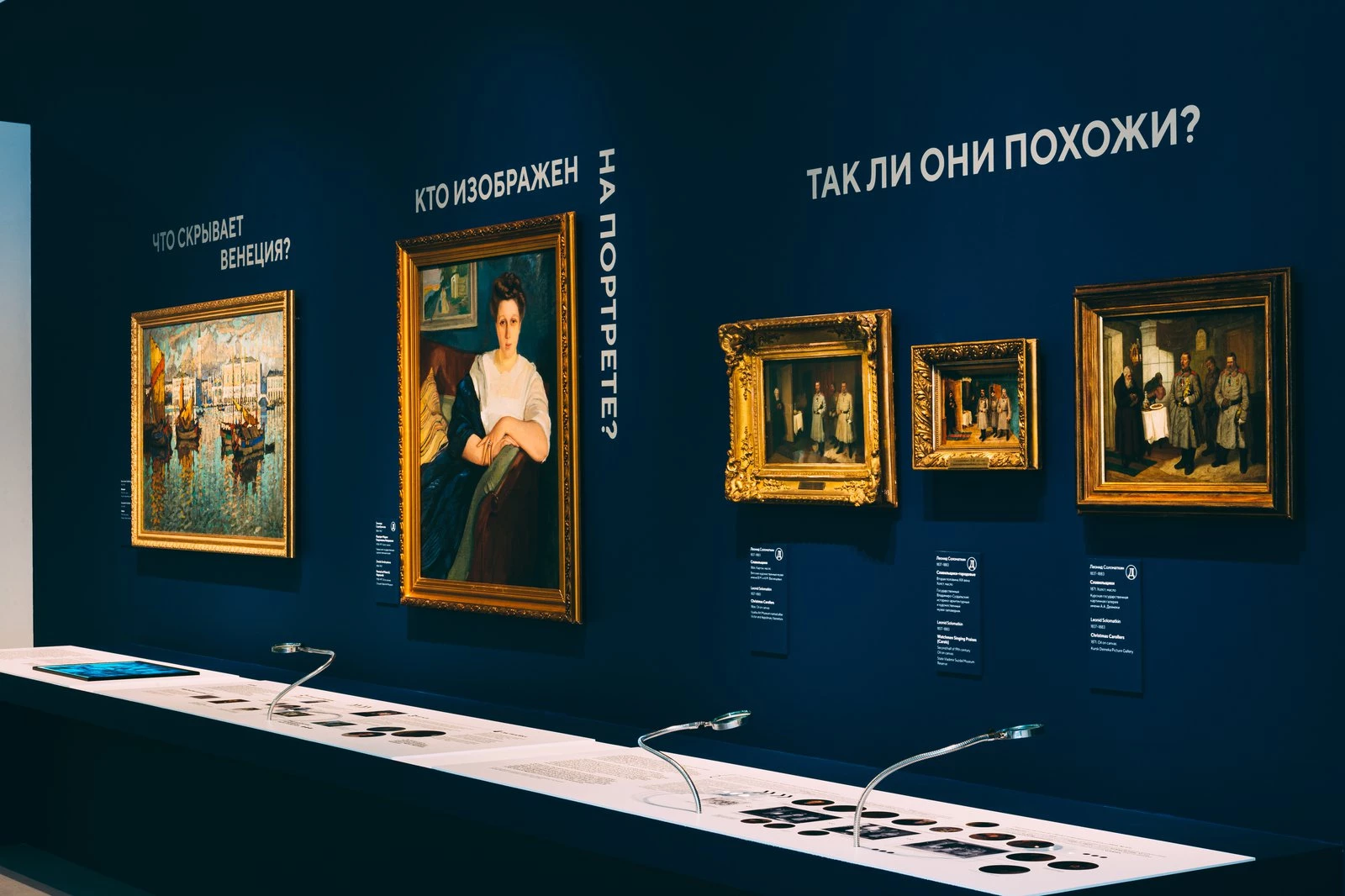 Сквозная линия выставки раскрывала тему музейных исследований и работы музейных сотрудников, большая часть которой обычно остается за кулисами. Для авторов проекта важно было говорить не только о художниках, но и о тех людях, благодаря которым шедевры сохраняются, а также о музее, как самостоятельной вселенной, где они продолжают свою жизнь. В разделе «Д — детектив» наряду с картинами посетителя ждали полные тайн и загадок истории их экспертизы. В другом разделе речь идет о хранителях музея, труд которых подчас становится подвигом, позволяющим сберечь неугодные времени работы или даже целые музейные коллекции.