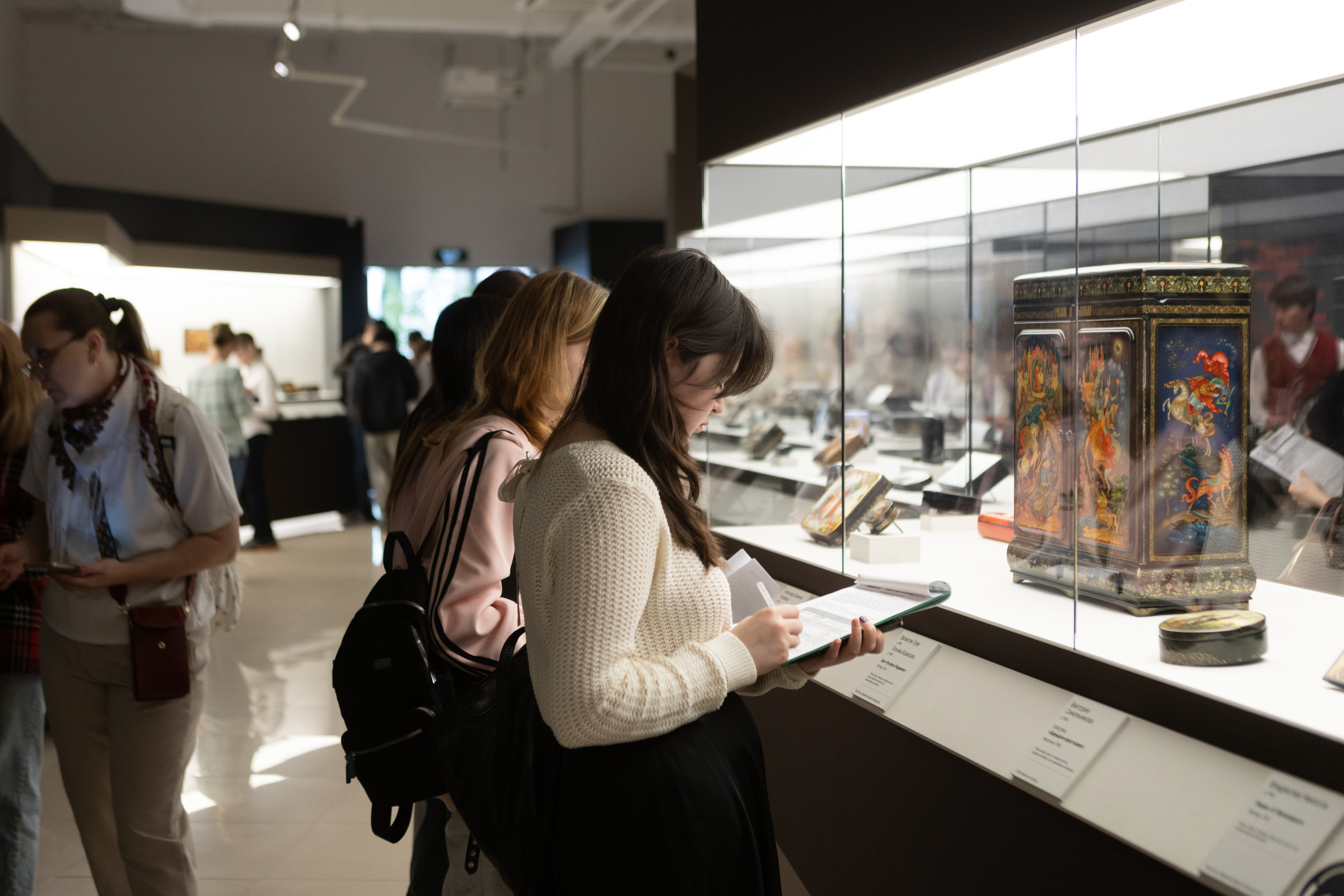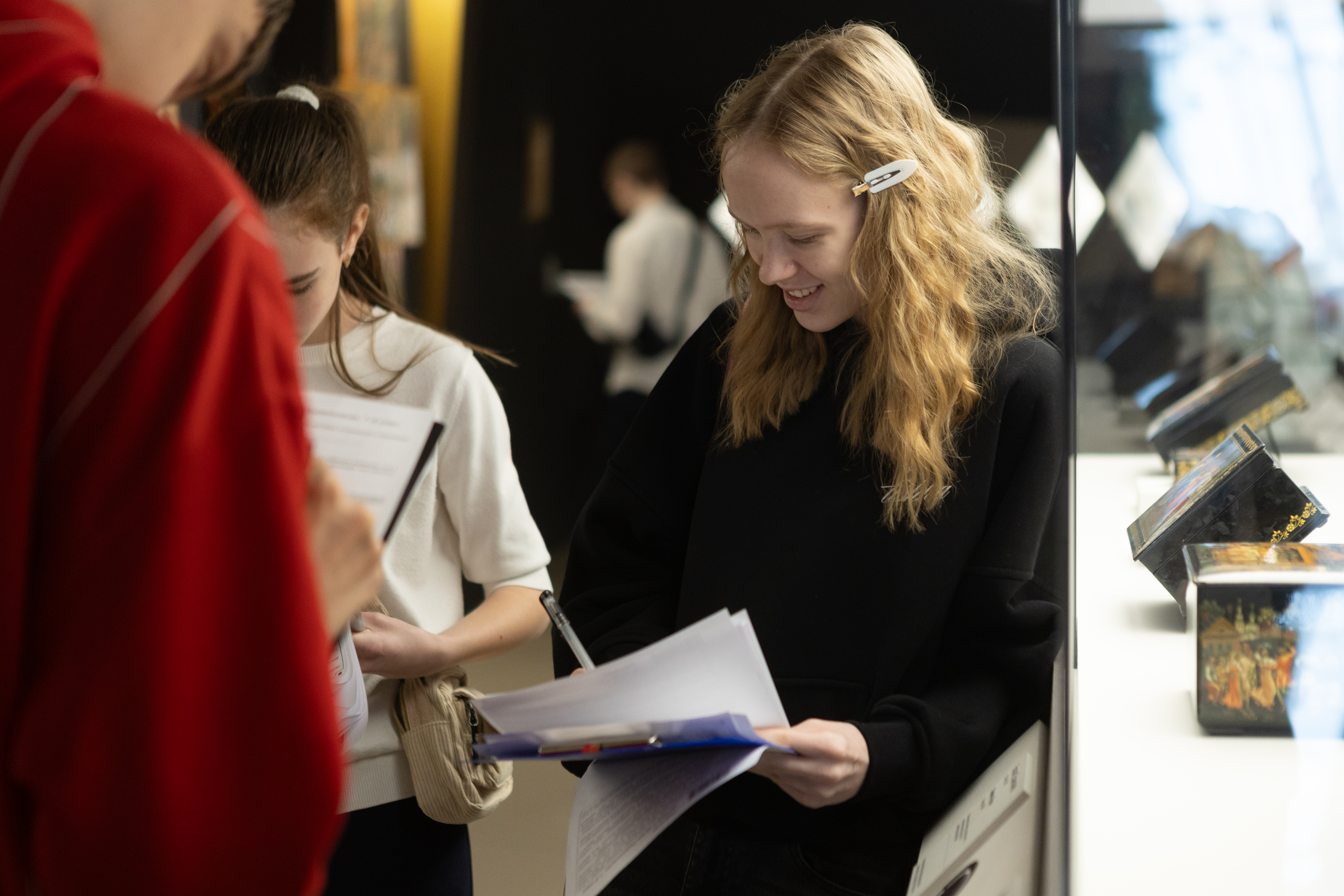 Уже в четвертый раз мы с радостью принимаем участников Олимпиады! Две недели подряд здесь кипела работа: сотни ребят из разных уголков страны каждый день с увлечением выполняли задания и погружались в атмосферу выставки «Лаки. Большая история в миниатюре». Необычный формат — формат олимпиады в музее — позволяет увидеть то, что скрыто за учебными параграфами: как искусство отражает эпоху, как традиции передаются через поколения, как в лаковых миниатюрах умещаются целые главы большой истории