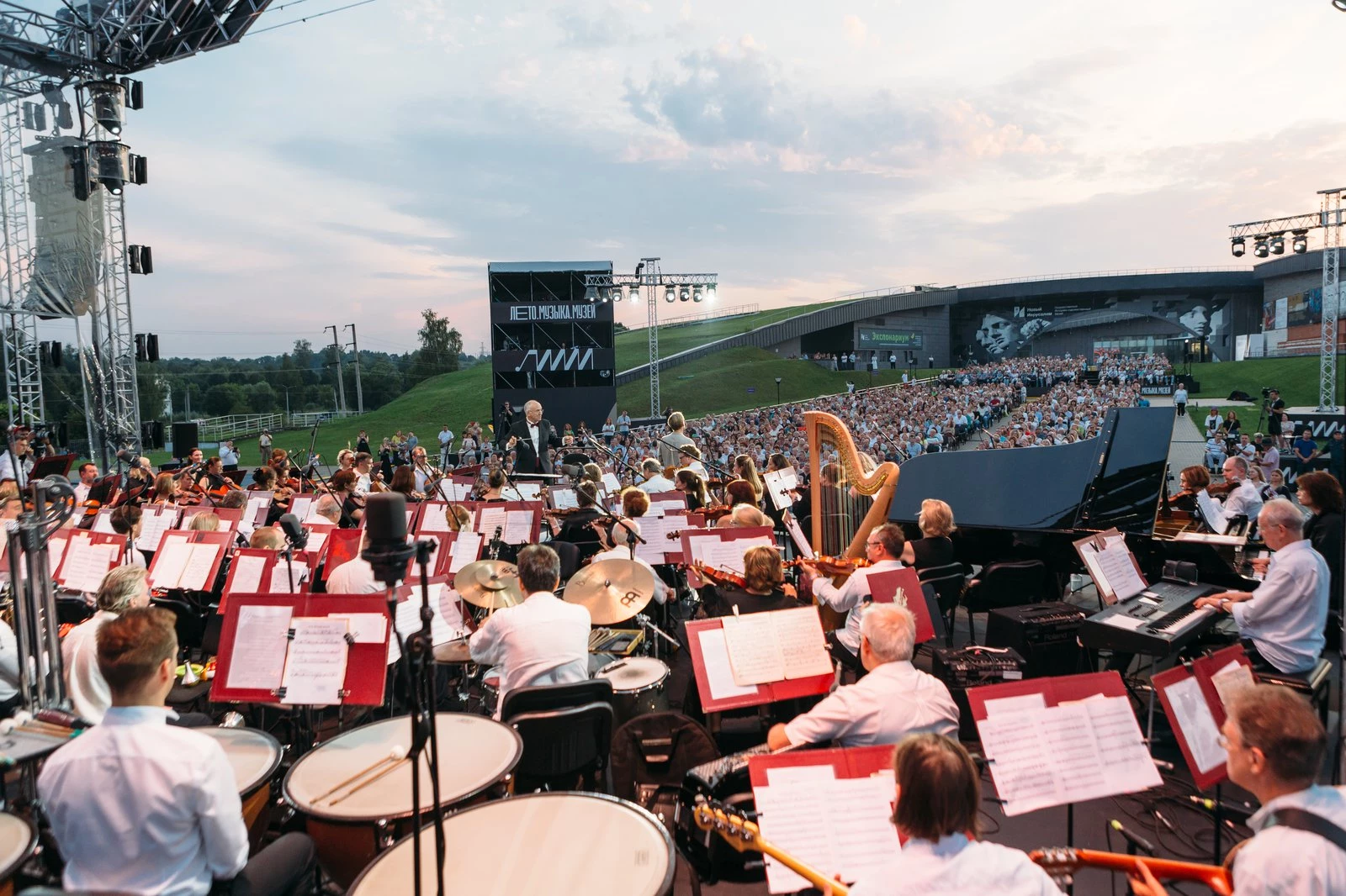 Музыку великих мастеров исполняли резидент фестиваля «Лето. Музыка. Музей» Государственный академический симфонический оркестр России им. Е. Ф. Светланова под управлением художественного руководителя фестиваля, дирижёра Дмитрия Юровского и дирижёра Александра Сладковского, дебютанта фестиваля, а также Большой симфонический оркестр им. П. И. Чайковского, который впервые выступал на мероприятии. Первый раз в фестивальных концертах также приняли участие дирижёры Сергей Скрипка и Фёдор Безносиков, пианист Филипп Копачевский, скрипач Вадим Репин, Большой детский хор им. В. С. Попова и «Мастера хорового пения», оркестр и труппа театра «Новая Опера».